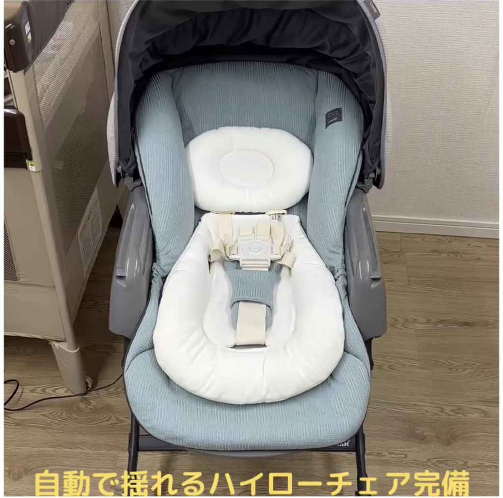 自動で揺れるハイローチェアーで寝ててくれる赤ちゃんも多いです。